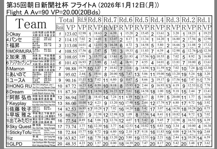 まあよくやった方じゃないかな。優勝したプロチームも平均年齢80歳ぐらいだからたいしたもんです。